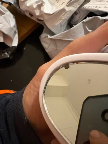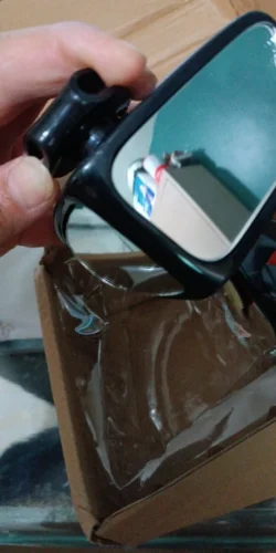 The mirror angle is adjusted. The weather is cold so it hasn't been installed yet.